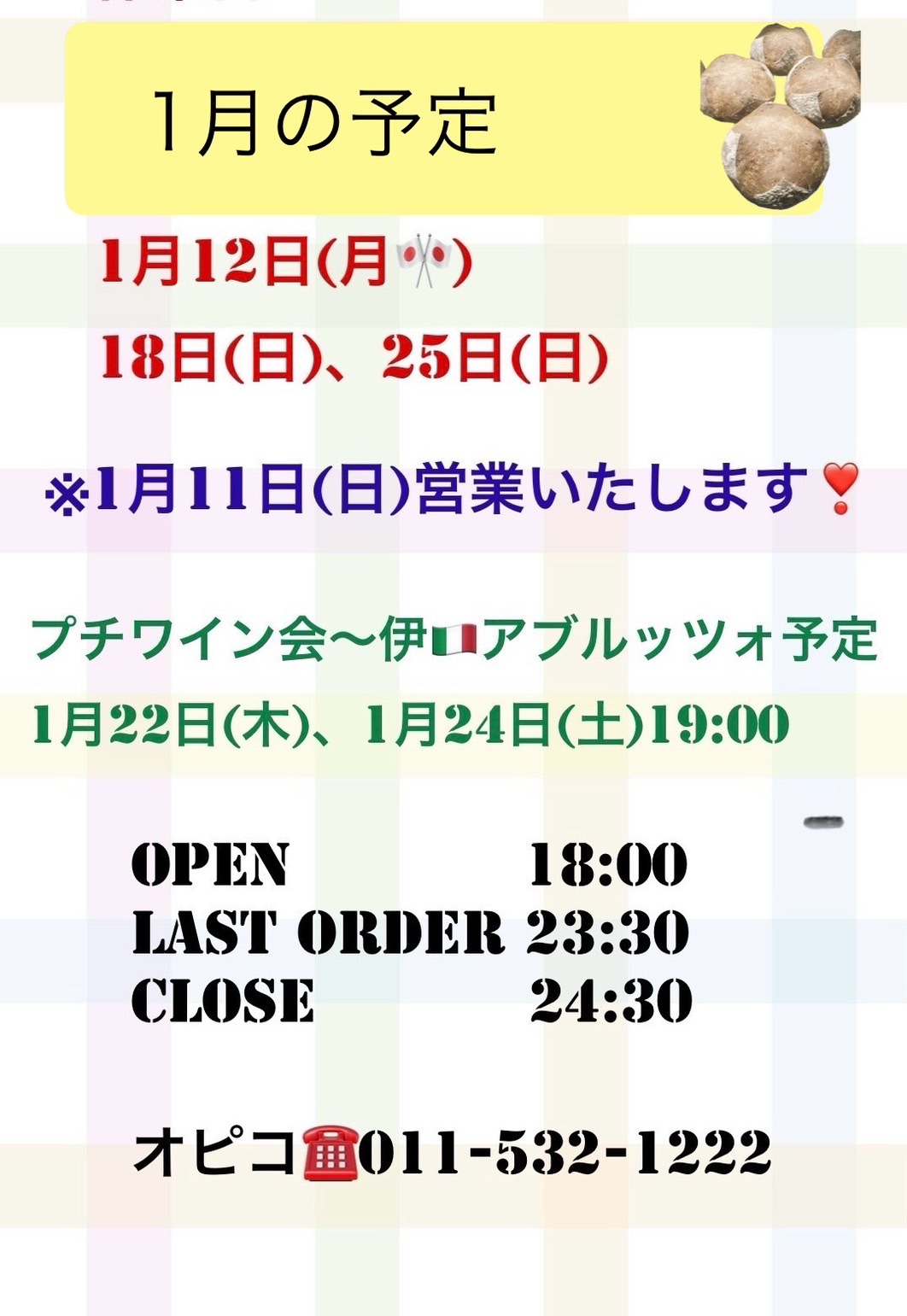 今週は11日(日)まで営業いたします。翌日12日(月🎌)休業日となります。