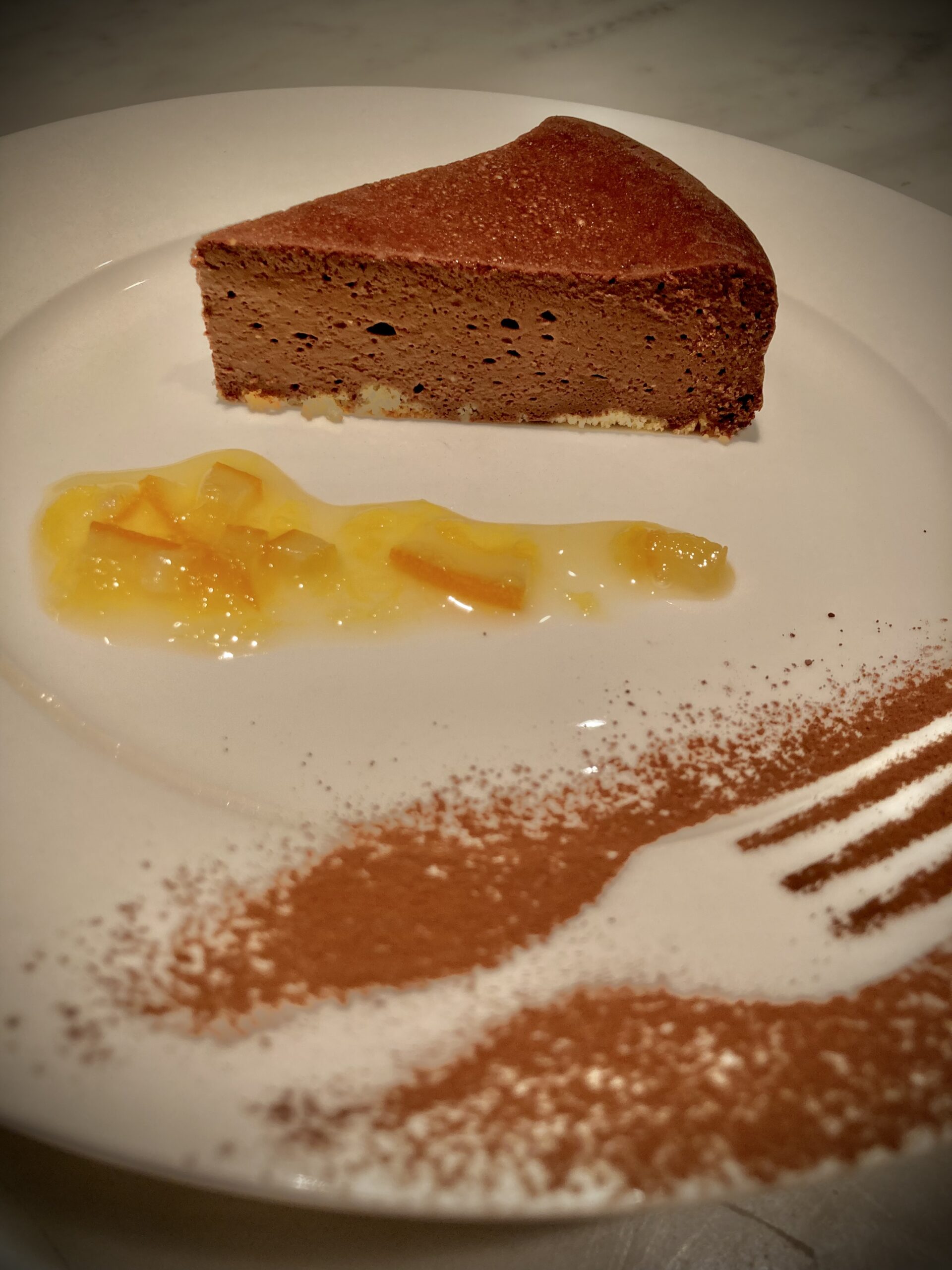 昨日から新登場のデザート『もっちりチョコレートチーズケーキ』です。北海道産十勝のクリームチーズとエクアドル産70%カカオチョコレートを贅沢に使用しました。是非お試しください😊広島県産ネーブルオレンジのジャムと共にどうぞ!